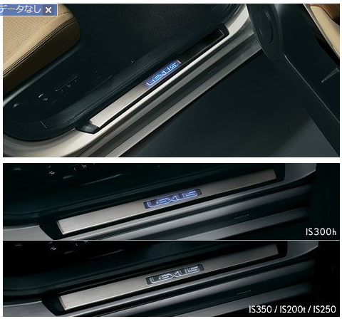 NXや現行RXはインサイド側ですが(NXの場合はそもそもアウトサイド側にはスカッフプレートがない…)、ISやGS、10系RXはアウトサイド側にロゴプレート・イルミがあります。