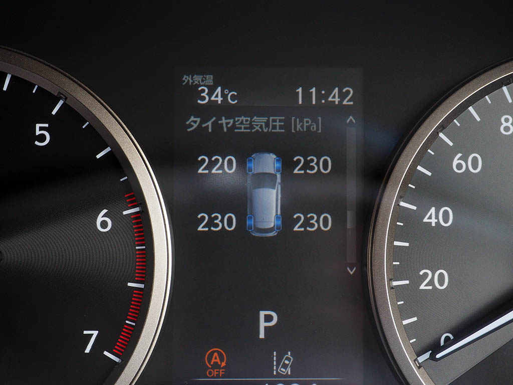 “F SPORT”グレード以外のグレードでも、メーター内のマルチインフォメーションモニターにタイヤ空気圧を表示させることができる非常に機能的かつ便利なユニットです。